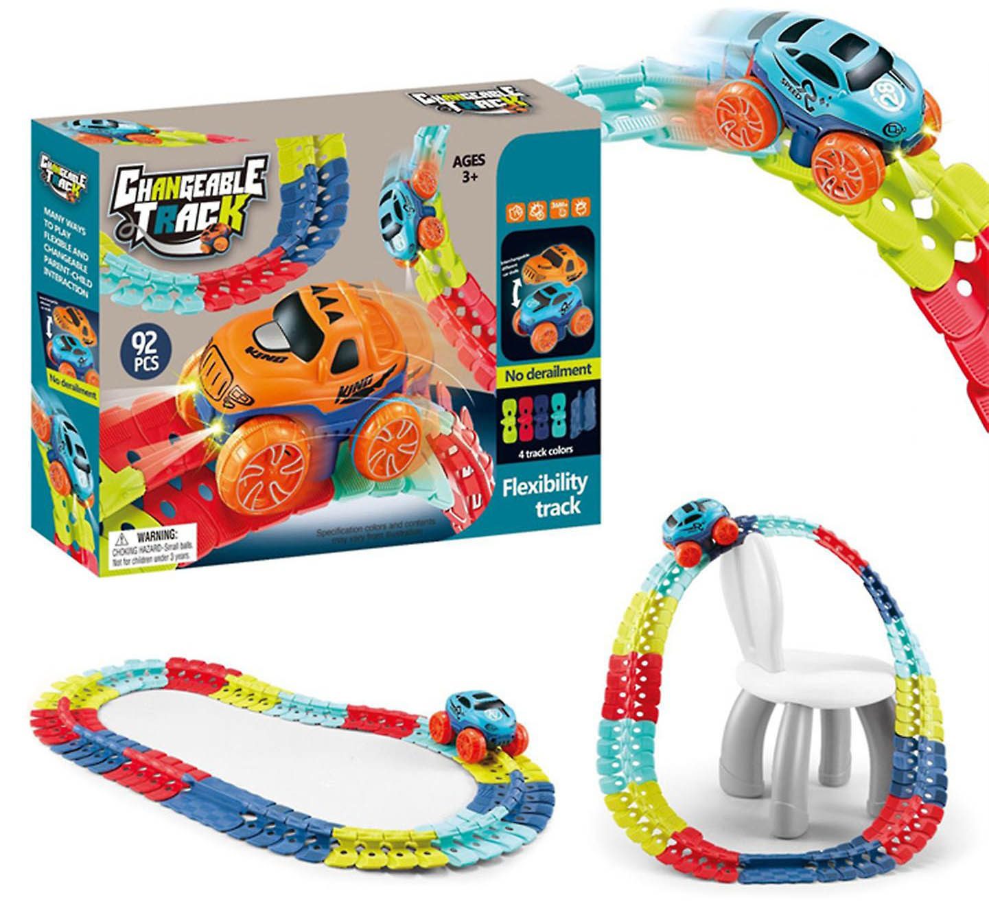 Το σύστημα κουμπώματος κάνει τη συναρμολόγηση απλή και ευχάριστη – μέσα σε λίγα λεπτά η πίστα "ζωντανεύει" γύρω από καρέκλες, τραπέζια ή και τοίχους. Όταν τελειώσει ο αγώνας, τυλίγετε την πίστα και την αποθηκεύετε εύκολα. Κατασκευασμένο από ανθεκτικά και ασφαλή υλικά, αυτό το σετ θα συνοδεύει τις περιπέτειες του παιδιού σας για πολύ καιρό.